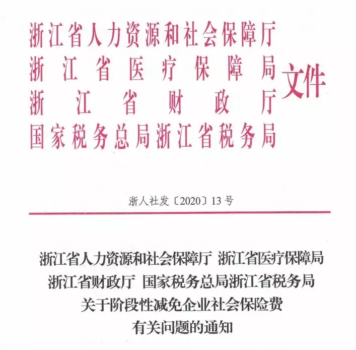 為深入貫徹習(xí)近平總書記關(guān)于新冠肺炎疫情防控工作的重要指示精神,全面落實黨中央、國務(wù)院和省委、省政府的決策部署,推動企業(yè)有序復(fù)工復(fù)產(chǎn)、切實減輕企業(yè)負擔、幫助企業(yè)渡過難關(guān),根據(jù)《人力資源社會保障部財政部稅務(wù)總局關(guān)于階段性減免企業(yè)社會保險費的通知》(人社部發(fā)〔2020〕11號)、《國家醫(yī)保局財政部稅務(wù)總局關(guān)于階段性減征職工基本醫(yī)療保險費的指導(dǎo)意見》(醫(yī)保發(fā)〔2020〕6號)等文件精神,結(jié)合浙江實際,在確保企業(yè)退休人員養(yǎng)老金按時足額發(fā)放及職工社會保險待遇不受影響、社會保險基金正常運行的前提下,階段性減免企業(yè)社會保險費。