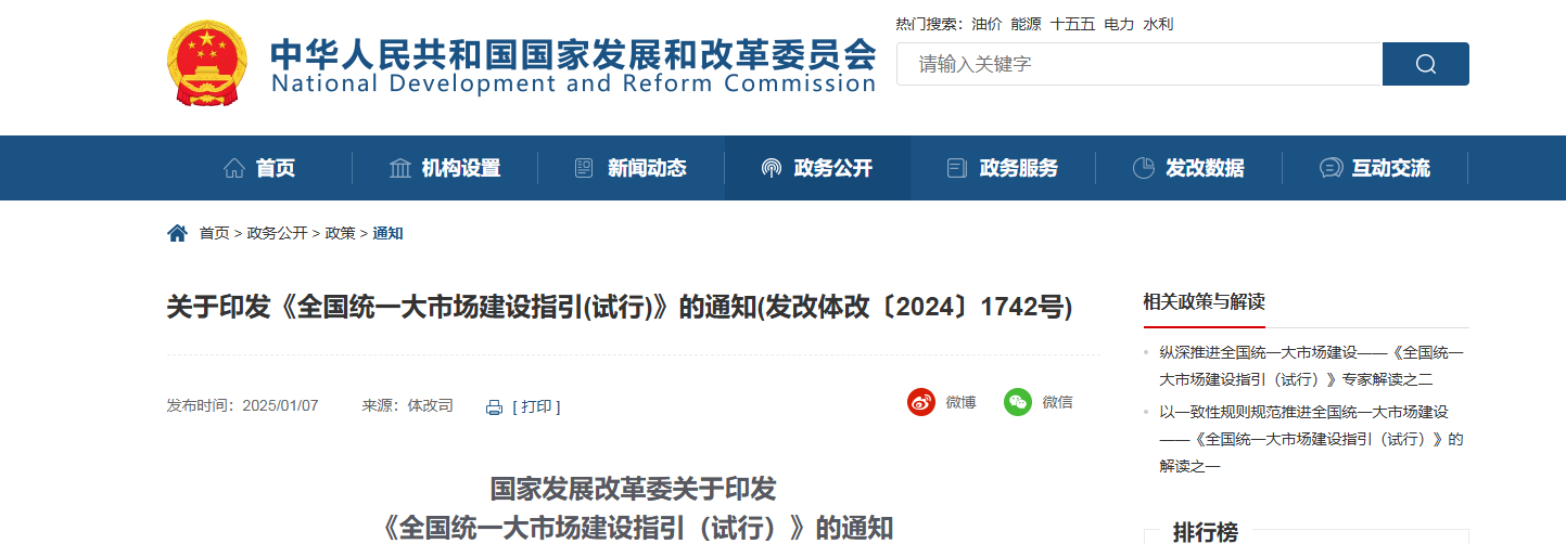 2025年1月7日,國家發展改革委發布了《全國統一大市場建設指引(試行)》。《指引》中明確全面取消在就業地參保戶籍限制,完善社保關系轉移接續政策。